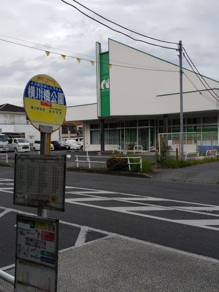 子供が指を指しておりますがその上 松枝住宅行きのバス停です。